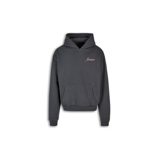 Geo Hoodie. - Dark Grey. - Pastel Pink / Rose Pink.